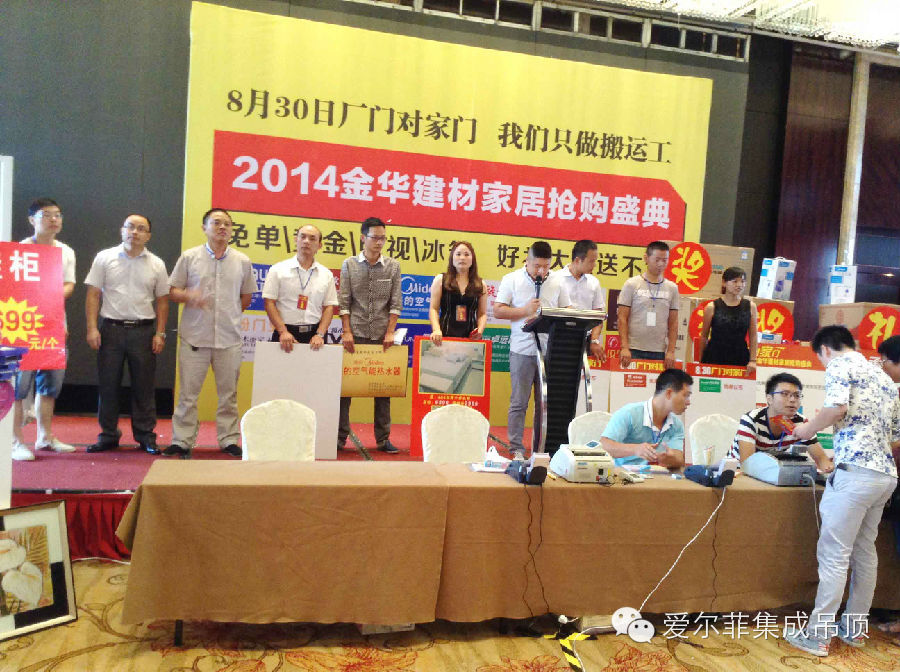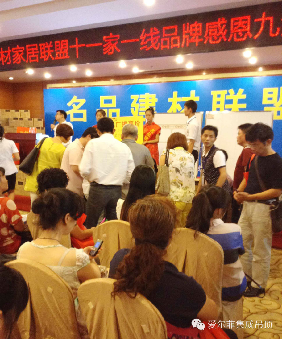 7月6日, 一場(chǎng)大型的名品建材聯(lián)盟團(tuán)購會(huì)在九江當(dāng)?shù)刈罹咧频陜?nèi)火熱展開,本次活動(dòng)是以“一線品牌感恩九江傾力巨惠”為主題,由包括愛爾菲歐式吊頂在內(nèi)的十一家名品建材商聯(lián)合舉辦。