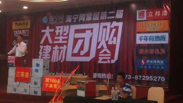 2012.9.16下午海寧網(wǎng)砍價會激情拉開帷幕,聯(lián)盟十大品牌包括上臣地板、立邦漆等傾情合作,在這涼涼秋季為廣大業(yè)主們帶來特大喜訊—超低驚爆價,震驚全城.