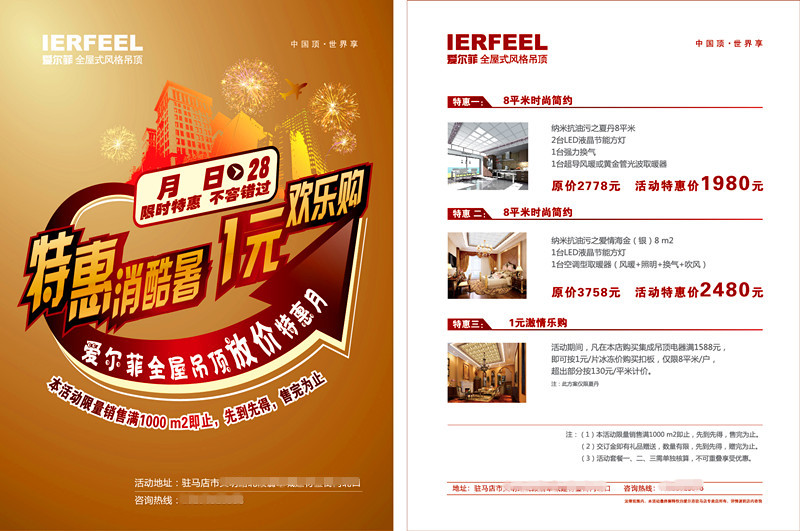 愛爾菲全屋式風格吊頂駐馬店專賣店,為回饋廣大消費者,特別推出“特惠消酷暑1元歡樂購”,好禮無限送活動。關注愛爾菲,關注活動好禮等你拿。