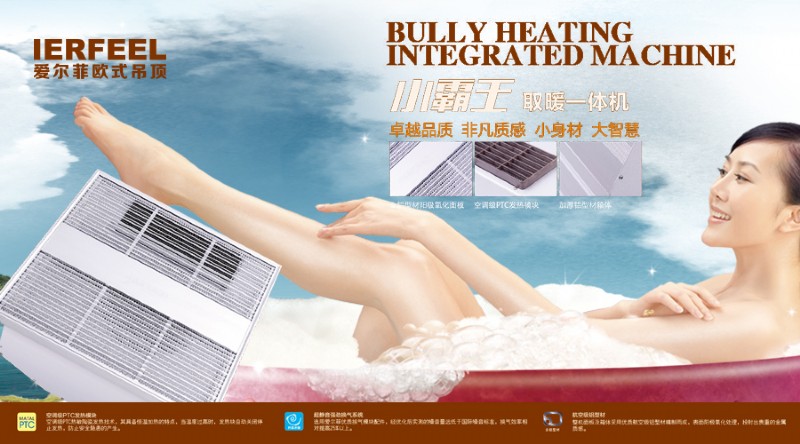 愛爾菲小霸王系列暖霸 為解決寒冬洗澡的人類難題,愛爾菲設(shè)計(jì)研發(fā)的暖霸,給畏寒的大小朋友提供一個(gè)溫暖舒適的洗浴溫度。洗澡前先打開浴霸,整個(gè)浴室溫度即速升溫,宛如夏天沐浴一樣清爽舒適。