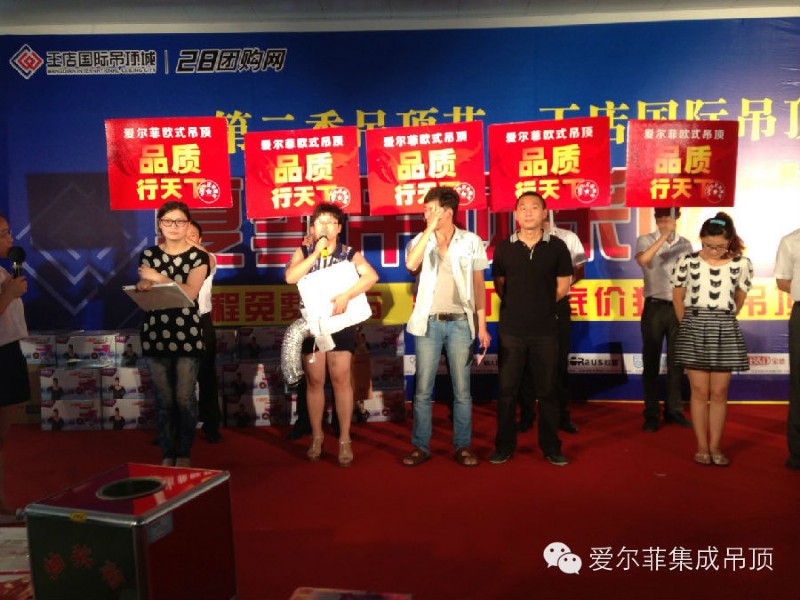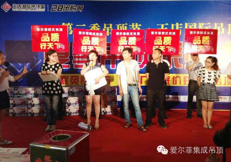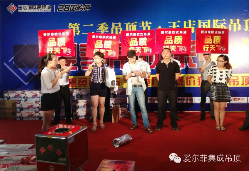 6月30日,在嘉興王店國際吊頂內(nèi),由28團購網(wǎng)協(xié)辦王店國際吊頂城主辦的“夏季吊頂采購大會”第二季大型促銷活動在吊頂城東門大廳內(nèi)如期開幕!本次活動,愛爾菲作為歐式吊頂領(lǐng)導(dǎo)者,以人氣最旺、檔次最高、影響力最大的品牌形象閃耀在超大規(guī)模的國際吊頂城內(nèi),引來行業(yè)及媒體的高度關(guān)注,愛爾菲產(chǎn)品更是贏得廣大消費者的一致好評!
