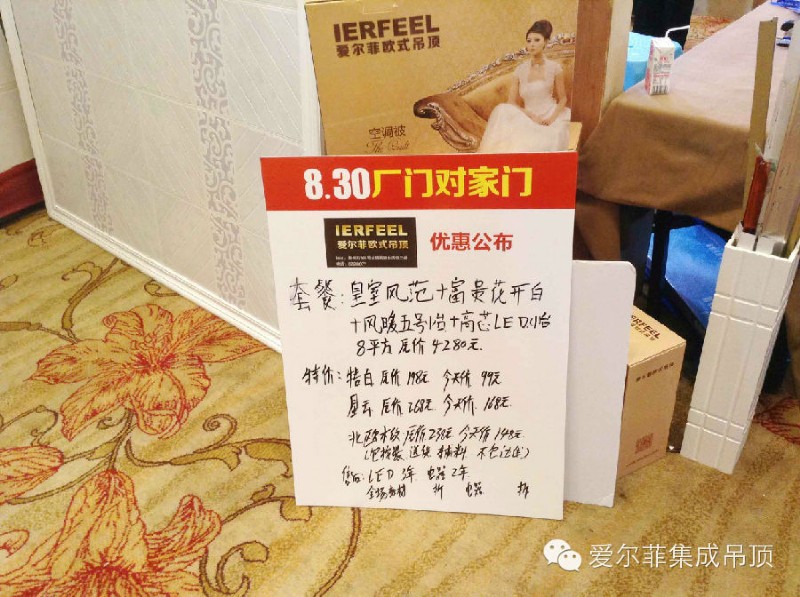 8月30日中午12點(diǎn)30分,2014金華建材家居搶購(gòu)盛典在當(dāng)?shù)睾兔澜鹋痛缶频陜?nèi)隆重揭幕,本次活動(dòng)主題“廠門對(duì)家門”搶購(gòu)盛典,是由包括愛爾菲歐式吊頂在內(nèi)的數(shù)十家建材行業(yè)一線品牌聯(lián)合舉辦,金華愛爾菲本次活動(dòng)打破開業(yè)以來的促銷底線,以最優(yōu)惠的價(jià)格感恩回饋新老客戶一直以來對(duì)愛爾菲品牌的支持與信賴!