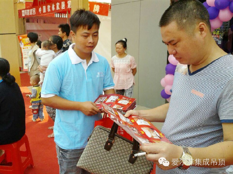本次活動是由華美立家建材市場主辦,愛爾菲歐式吊頂、馬可波羅磁磚、蒙娜麗沙磁磚、志邦廚柜等一線建材品牌聯(lián)合承辦。愛爾菲公司市場部沈經理受邀出席了本次簽售會,前期大量的廣告宣傳預熱和強大品牌號召力,使得總載簽售活動現(xiàn)場人氣爆棚,場驚喜不斷,豐富禮品送不停。為回饋吉安消費者一直以來對愛爾菲歐式吊頂?shù)恼J可與信賴,特推出的數(shù)款新品套餐組合驚爆折扣價,吸引了到場消費者紛紛前來咨詢下單。從展位前排隊交款的火熱場面來看,愛爾菲無疑已經成為了全場簽單明星。