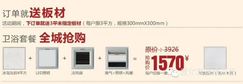 活動(dòng)期間,下訂單就送3平米指定板材(每戶限3平方,規(guī)格300mm*300mm)