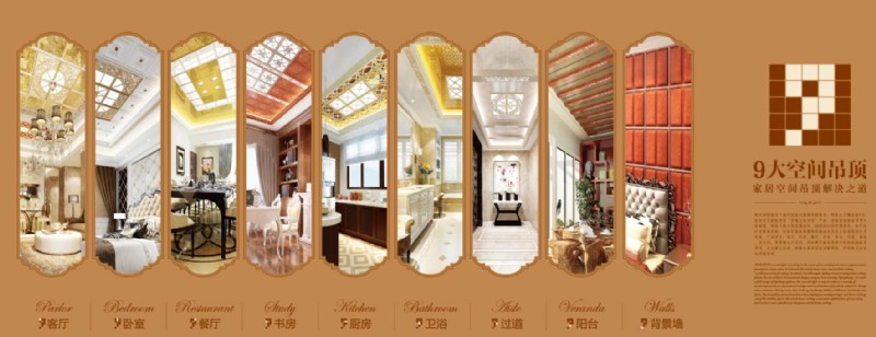 愛(ài)爾菲自誕生以來(lái)就彌漫著關(guān)于品味與潮流的藝術(shù)氣息,不單單提供專(zhuān)業(yè)具有高品質(zhì)的家居吊頂,更重要的是,根據(jù)當(dāng)下流行家裝的整體風(fēng)格需求,研發(fā)出引爆全屋9大空間吊頂新格局的“多維立體吊頂”產(chǎn)品,涉及客廳、臥室、餐廳、書(shū)房、陽(yáng)臺(tái)、過(guò)道、廚房、衛(wèi)生間、背景墻九大空間,形成現(xiàn)代家裝極具個(gè)性的高端家居吊頂,走出廚衛(wèi)空間,創(chuàng)新全屋吊頂應(yīng)用新理念,開(kāi)創(chuàng)歐式式屋吊頂新局面。