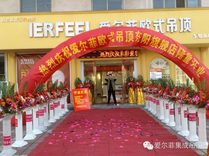 本次開業(yè)慶典活動,愛爾菲營銷部周總監(jiān)也將親臨現(xiàn)場參與了慶典議式,和東陽愛爾菲營銷團(tuán)隊(duì)一起共同見證了愛爾菲歐式吊頂東陽旗艦店的誕生,氣勢磅礴的彩虹門和長長的紅地毯吸引無數(shù)消費(fèi)者進(jìn)店觀望。為感謝東陽市民對愛爾菲歐式吊頂?shù)闹С趾完P(guān)注,此次還特別推出開業(yè)巨惠進(jìn)店有禮活動,為全城消費(fèi)者獻(xiàn)上一場豐厚的優(yōu)惠盛宴,為東陽消費(fèi)者帶來藝術(shù)般的優(yōu)雅貴族式生活體驗(yàn)。