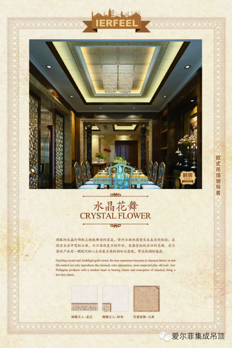 愛爾菲歐式吊頂,集成吊頂十大品牌,歐式吊頂領導品牌,引領歐式吊頂時尚潮流,打造新貴族低調(diào)奢華家居典范!全國使用者超過數(shù)十萬戶,是集成吊頂行業(yè)最值得信賴的高端吊頂品牌之一。