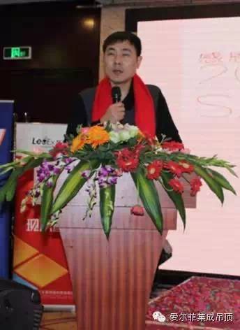 注酒儀式結(jié)束之后,在主持人的盛情邀請(qǐng)下,中國(guó)裝飾協(xié)會(huì)吊頂分會(huì)秘書(shū)長(zhǎng)丁輝上臺(tái)致辭。他首先對(duì)愛(ài)爾菲本次大會(huì)的舉行表示祝賀,同時(shí)也作為協(xié)會(huì)代表表達(dá)了對(duì)愛(ài)爾菲吊頂未來(lái)工作支持的決心。會(huì)上,他分析了吊頂行業(yè)現(xiàn)狀,并現(xiàn)場(chǎng)承諾了加大力度規(guī)范吊頂市場(chǎng)并打擊假冒行為,他表示明年會(huì)聯(lián)合各地工商部門將打架行動(dòng)付諸實(shí)踐。