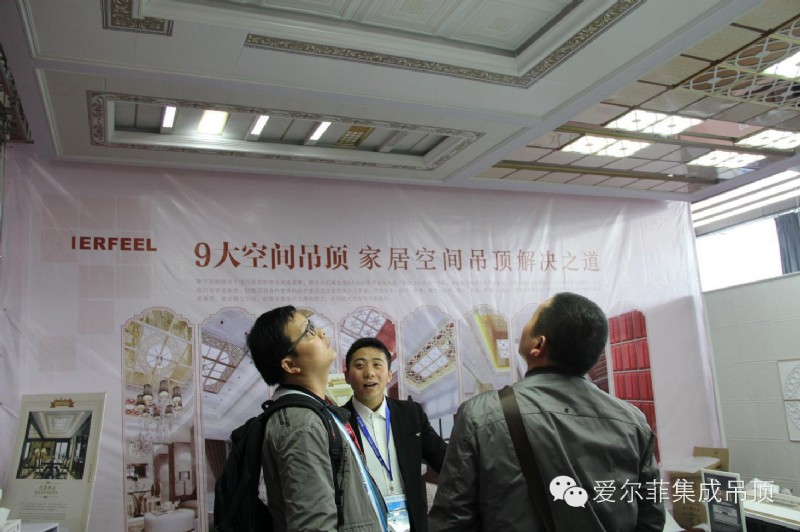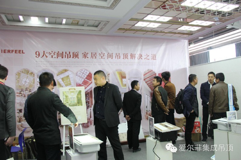 全屋吊頂九大空間,家居空間解決之道!大大的宣傳海報(bào),吸引無(wú)數(shù)參觀商駐足觀望,335系列行業(yè)首推奢華的歐式吊頂產(chǎn)品,特別引人注目,前來(lái)咨詢(xún)的加盟商們都驚嘆不已,開(kāi)館時(shí)間僅一個(gè)上午愛(ài)爾菲展館內(nèi)便接待七百余人,人頭攢動(dòng)的愛(ài)爾菲展館內(nèi)人氣異?;鸨?。