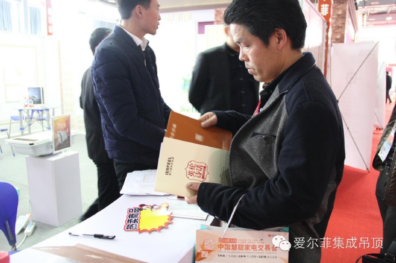 在參觀完愛(ài)爾菲展館后,很多意向客戶都向工作人員索要愛(ài)爾菲加盟咨料并咨詢(xún)?nèi)绾渭用?,現(xiàn)場(chǎng)電器演示,板材工藝解析,每一款產(chǎn)品都為愛(ài)爾菲品牌倍增美譽(yù)度,此次中國(guó)余姚家電展愛(ài)爾菲歐式吊頂?shù)玫搅吮姸嘁庀蚩蛻舻男蕾p和認(rèn)可。