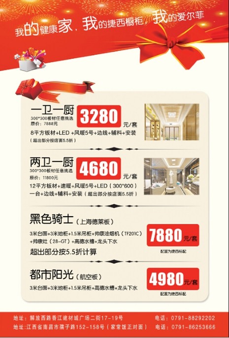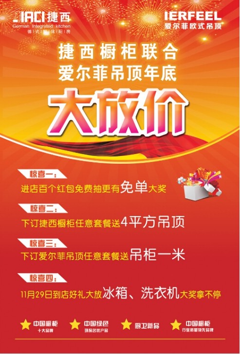 11月18日—29日,南昌愛爾菲聯(lián)合捷西櫥柜共同舉辦的“年底大放價(jià):年度最強(qiáng)促銷活動(dòng)火熱啟動(dòng)!本次活動(dòng)促銷力度可謂是全年之最,前所未有,大品牌,強(qiáng)強(qiáng)聯(lián)合,重重驚喜,讓您瘋狂購不停,在南昌地區(qū)準(zhǔn)備裝修的消費(fèi)者朋友們,你們不能錯(cuò)過哦!