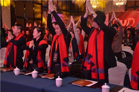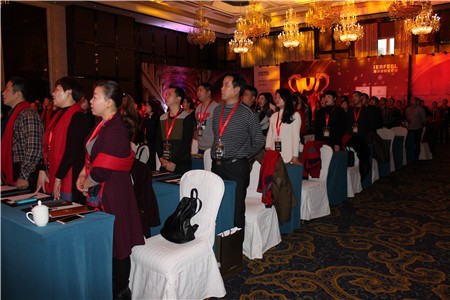隨著整個會場的氣氛被點燃,愛爾菲總經(jīng)理董海飛、常務(wù)副總宋高峰、營銷總監(jiān)周衛(wèi)國、市場部經(jīng)理俞敏莉和全年銷售冠軍長春經(jīng)銷商吳冬梅一起上臺為本次主題年會揭幕。全場嘉賓自發(fā)全體起立,有節(jié)奏的鼓掌聲,吶喊聲,倒數(shù)計時聲響徹會場上空。隨著倒數(shù)計時結(jié)束,禮花齊放,幾位領(lǐng)導(dǎo)一起拉下幕布,“聚重力.贏未來”留個大字被點亮,全場掌聲連連,高潮迭起。