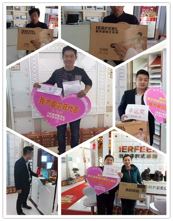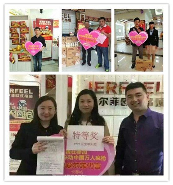經(jīng)過半個多月的奮戰(zhàn),愛爾菲各終端取得不俗戰(zhàn)績,成果斐然,另一方面眾多愛爾菲品牌的忠實(shí)用戶也都各有收獲,喜形于色,豪禮大禮帶回家。愛爾菲用心感恩,用禮回饋!精心的策劃為每一位愛爾菲的客戶帶來從未有過的鉅惠!這是一個品牌的感恩,愛爾菲用實(shí)際行動在證明,在品牌的道路上,愛爾菲風(fēng)雨兼程!