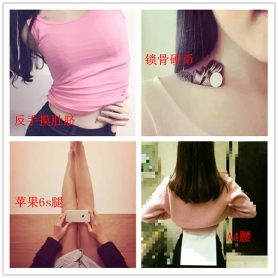 標(biāo)準(zhǔn)二:魔鬼身材,反手摸肚臍+鎖骨硬幣+蘋果6s腿+A4腰,看你紅不紅!
